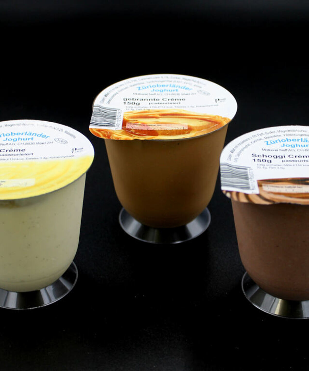 Wer hat Lust auf eine süsse Crème zum Dessert? Dann sind unsere Crèmes in den Sorten Vanille, gebrannte Crème und Schoggi genau das Richtige für dich. Aus über 80 % regionalen Zutaten hergestellt, weisen sie das Zertifikat "us em Zürioberland" auf.